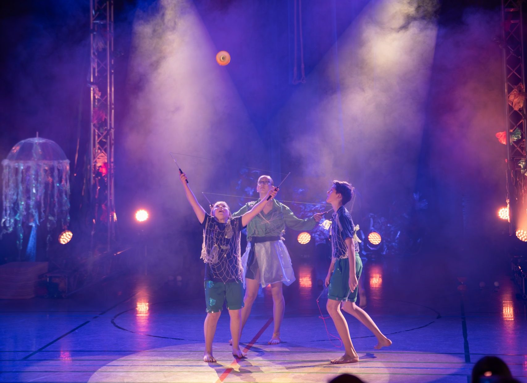 Wir sind die Diabolo Gruppe und unsere Requisiten sind Diabolos, Devil Sticks, Springseile und vieles mehr. So verzaubern wir mit mehreren Diabolos, die bis hoch in die Luft fliegen, das Publikum. Wir trainieren mit viel Spaß und Konzentration.