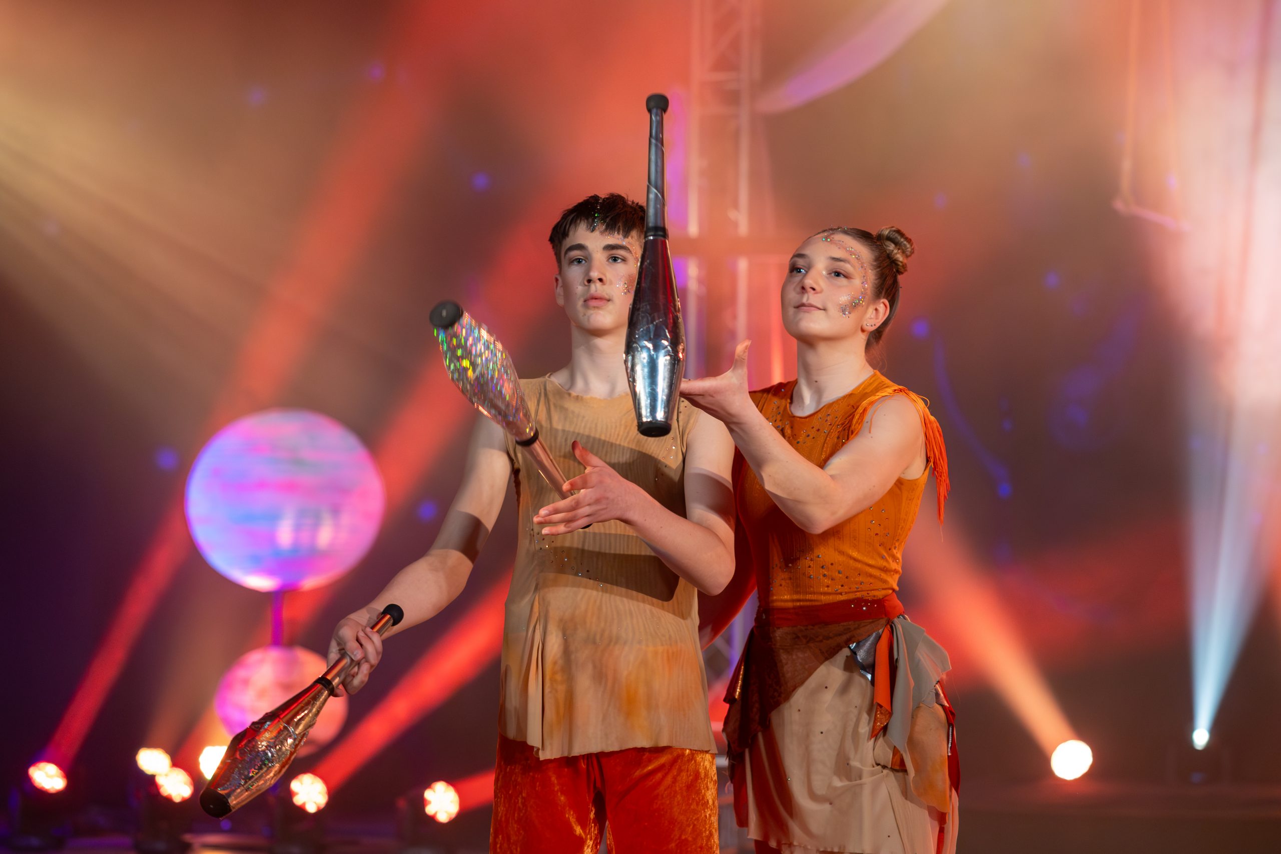Wir sind die Jonglage Gruppe und bei uns fliegen Bälle, Keulen, Hüte, Ringe und vieles mehr hoch durch die Luft. Ein schnelles Reaktionsvermögen und Geschicklich aber auch viel Übung brauchen wir, damit nichts auf dem Boden, sondern wieder in unseren Händen landet.